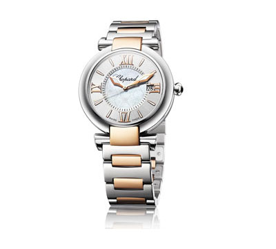 這款全新的Imperiale腕表精妙地結(jié)合簡(jiǎn)約與高貴,精致與性感,散發(fā)出永恒與時(shí)尚的氣息。腕表有36毫米及40毫米直徑,鑲鉆和不鑲鉆款式可供選擇。其中小型款搭載石英機(jī)芯,大型款搭載自動(dòng)上鏈機(jī)械機(jī)芯。搭配玫瑰金加精鋼表鏈或短吻鱷魚皮表帶,這款雙色I(xiàn)MPERIALE腕表表款千變?nèi)f化,力求吸引要求最嚴(yán)謹(jǐn)?shù)呐?并常伴其左右,出入任何場(chǎng)合。