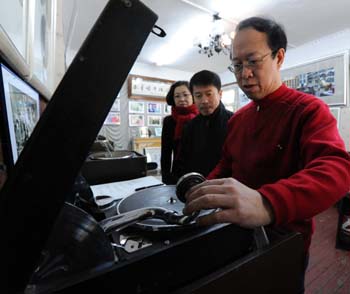 目前,衣軍的藏品都存放在他租來的收藏室里。他添置了一些現(xiàn)代化的設(shè)備:電腦、打印機(jī)、掃描儀,并建立了數(shù)據(jù)庫,對藏品進(jìn)行分類管理。衣軍說,他現(xiàn)在想為唱片和留聲機(jī)找一個大型展館,然后分門別類地擺放在那里,作為文化教育場館,長期面向市民開放。他說,唱片的收藏旨在保存歷史,同時追求歷史的真實(shí),無論是公藏還是私藏,對人類都無疑是一種貢獻(xiàn)。