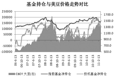 總的來(lái)看,在豆類市場(chǎng)中,投機(jī)基金下調(diào)大豆、豆油凈多持倉(cāng)比例,而增加豆粕份額;指數(shù)基金則保持穩(wěn)中略增的局面。