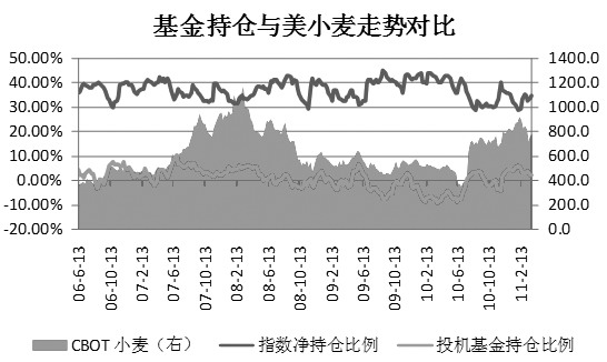 小麥:CBOT小麥期價(jià)3月份呈現(xiàn)下跌勢(shì)頭,但小麥的總持倉(cāng)則出現(xiàn)逐步增加的局面。投機(jī)基金在CBOT小麥?zhǔn)袌?chǎng)中多空平倉(cāng),截止到3月29日,投機(jī)基金在小麥上凈多持倉(cāng)從18934手下降至14202手,凈多持倉(cāng)比例徘徊在多空分水嶺處。在小麥?zhǔn)袌?chǎng)中,指數(shù)基金頭寸占據(jù)較大份額。3月份指數(shù)基金對(duì)于CBOT小麥多空不斷加碼,對(duì)于小麥的樂(lè)觀預(yù)期依舊。目前指數(shù)基金在小麥?zhǔn)袌?chǎng)中凈多持倉(cāng)達(dá)215278手,凈多持倉(cāng)比例為34.40%。兩大基金對(duì)于小麥?zhǔn)袌?chǎng)看法差異較大,小麥后市波動(dòng)可能加劇。