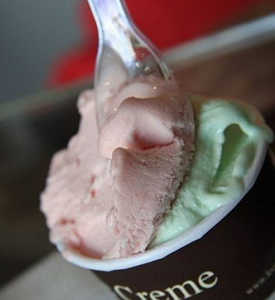 店主是熱情的意大利女人,冰激凌是就她手工制作的,全套制作工具和流程透過門店的玻璃隔板就可以看到。冰柜里約有20種口味的冰淇淋,色彩紛呈,甚是好看。最受歡迎還屬芒果口味,真正芒果制作,細(xì)心品嘗能吃到果肉纖維,新鮮的果肉香味,勾人口水。