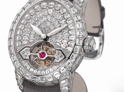 陀飛輪高級(jí)珠寶表的寶石鑲嵌工序,便耗時(shí)超過(guò)700小時(shí)。