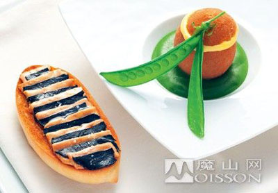 橙子冰淇淋配上略略烘烤過的面包,再鋪上墨魚片,外觀就給人極大享受,輕輕品嘗一口更是清新自然,讓人盡享法式味道。