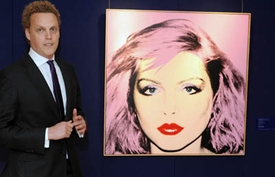 圖為媒體預(yù)展上展示的安迪·沃霍爾的畫作《Debbie Harry》,估價3.5-5.5百萬英鎊。