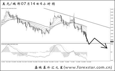 美元兌瑞郎在經(jīng)歷了一個(gè)多月的盤整走勢(shì)之后再度強(qiáng)悍創(chuàng)出新低,日線圖下降趨勢(shì)線的壓制作用完好,短中線方向再度趨于一致,目前瑞郎仍為非美中表現(xiàn)最為強(qiáng)勢(shì)的幣種。由于下方?jīng)]有任何點(diǎn)位可以阻擋住匯價(jià)的下行,現(xiàn)在操作以堅(jiān)定的做空美瑞為主,見到平緩的調(diào)整節(jié)奏、量好止損幅度后方可入場(chǎng)。