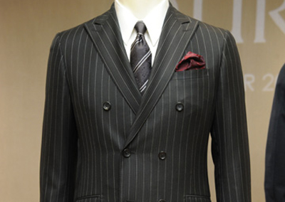 以黑色、灰色及灰藍色作為整個系列的基調,選用非傳統面料的炭灰色雙排扣西裝是這一個系列的亮點,以相同色調的襯衣哲學,配以一件灰藍色襯衫,突顯穿衣者的獨特品味。設計師也細意為男士準備了羊毛面料的外套跟背心外套的配搭,隨意換上一件休閑襯衫、羊毛領呔及長褲,就已經散發(fā)出高雅的味道。翻領上的鈕扣孔及拉錬,包含了結合日本革新科技及歐洲經典設計的精神,由格仔所組成的條紋,已經可以感受到男士穿著時的時尚魅力。