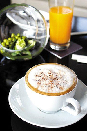 每套下午茶除了雙層點(diǎn)心之外,配套的還有時(shí)令水果盤、精選酩茶、咖啡或特制檸檬冰茶,調(diào)味的自制黃桃醬和無花果醬、意式芝士、法式牛油也一并奉上。值得一提的是,這里的Cappuccino(卡布奇諾)被許多熟客認(rèn)為是“the
