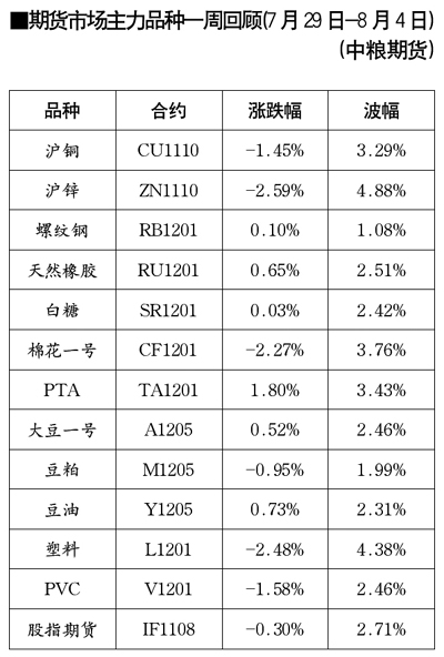 期貨市場主力品種一周回顧[7月29日-8月4日]