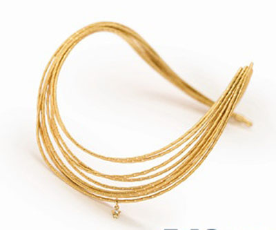 依照華洛芙一貫的珠寶制作傳統(tǒng),無論是設(shè)計(jì)構(gòu)想,還是設(shè)計(jì)草圖,都要經(jīng)過無數(shù)次嘗試。但是這一次,卻不同以往。“日光”項(xiàng)鏈因?yàn)橐淮闻既坏臋C(jī)遇而有了它的全新面貌。當(dāng)時(shí),華洛芙的金匠正在修補(bǔ)一條因?yàn)楸kU(xiǎn)箱門而被夾壞從而產(chǎn)生凹痕的項(xiàng)鏈。當(dāng)陽光照進(jìn)工作室的那一瞬間,那道凹痕反射出了璀璨炫目的光芒,這樣完美的光效讓金匠們驚嘆不已,于是,他們決定要將這個(gè)效果復(fù)制到一條全新的項(xiàng)鏈上面。經(jīng)過多次實(shí)驗(yàn)和設(shè)計(jì)調(diào)整,并且在一種新穎的纏繞技術(shù)的幫助之下,最后,他們創(chuàng)造出了這款全新的光彩奪目的華洛芙金絲編花項(xiàng)鏈。