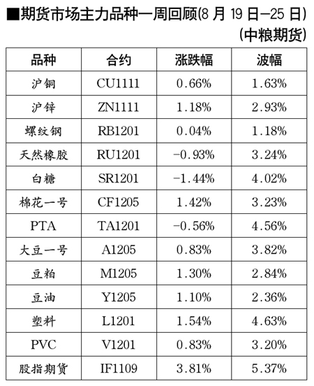 期貨市場主力品種一周回顧[2011.08.19-2011.08.25]