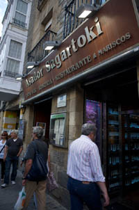 按照“旅游指南”的推薦,我們來到Vitoria最好的一家蘋果酒酒館,這家名為sagartoki的蘋果酒酒館是當?shù)刈钪木起^。很多人來這里并不是沖著蘋果酒,而是這里的塔帕斯。