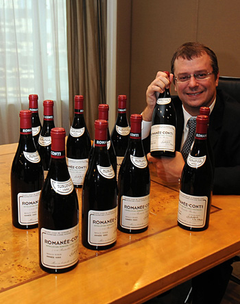9月14日,拍賣行負(fù)責(zé)人在展示12瓶估價(jià)120萬至160萬港元的羅曼尼·康帝(DRC Romanee Conti)1990年名釀。當(dāng)日,Acker Merrall & Condit拍賣行舉行新聞發(fā)布會(huì),宣布于9月16日至17日舉行名酒拍賣會(huì),將拍賣959批珍罕名釀,總估值8000萬港元。