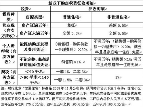 另外,我愛我家社區(qū)專家提醒購(gòu)房者,上表中賣掉小戶型所涉及的稅費(fèi)是按照出售房屋定義為普通住宅,而購(gòu)置大戶型時(shí)的契稅是按照非普通住宅計(jì)算的。具體的稅費(fèi)征收明細(xì)請(qǐng)看下表: