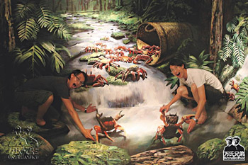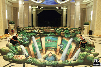 輕松詼諧的話語中飽含了對3D立體地畫這份“好玩”的熱愛與執(zhí)著。也正是這一點,促使他們在這個新興的藝術(shù)形式上不斷進(jìn)行技術(shù)改良,更新觀念激發(fā)創(chuàng)意,給這個西洋舶來品賦予了濃郁的中國風(fēng)味,如《徐霞客穿越時空》就是以徐霞客游歷為主題,通過組合時空、綠色等元素,營造出一種夢幻般的意境。目前,他們已率先成為廣東省的立體畫藝術(shù)家,3D錯覺畫技術(shù)在國內(nèi)也是數(shù)一數(shù)二,《中國山水》和《阿凡達(dá)》的面世,更讓他們開創(chuàng)了國內(nèi)3D地畫的新形式,在國內(nèi)3D地畫史上掀開了嶄新的一頁。