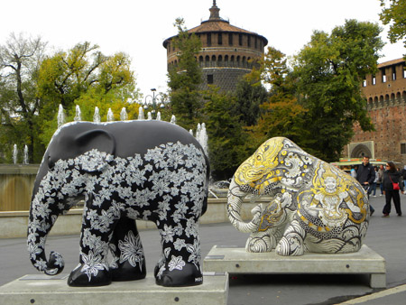 80尊彩繪藝術(shù)大象模型近期亮相米蘭街頭。這項名為“大象游行”的活動由保護(hù)亞洲象的慈善組織發(fā)起,旨在吸引公眾對瀕危亞洲象的關(guān)注。11月22日,這些彩繪大象模型將全部拍賣,拍賣所得將用于亞洲象保護(hù)事業(yè)。新華社發(fā)