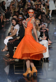 輕盈、透明的桑蠶絲、人造絲是明年春夏最受歡迎的面料。不過(guò),要想穿著得體,在性感的同時(shí)避免走光,就得在搭配上費(fèi)一番腦筋了。