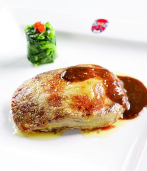 用小火微煎鵝肝,只將鵝肝翻一次面,這樣充分保證了肉質(zhì)的鮮嫩和營養(yǎng)價值,再配上特制的巧克力紅酒汁,齒頰留香。