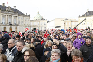 整個(gè)慶典活動(dòng)在今年的1月14日和15日進(jìn)入高潮,丹麥的政要人物和歐洲其他國(guó)家的王室成員紛紛到場(chǎng),向瑪格麗特二世表示祝賀。特別值得一提的是,女王與丈夫亨里克親王在14日乘坐四輪馬車(chē),在48名皇家衛(wèi)兵組成的護(hù)衛(wèi)隊(duì)的護(hù)送下從阿馬林堡王宮出發(fā),在哥本哈根市中心地帶游行。女王所乘坐的皇家馬車(chē)是所有皇家馬車(chē)中級(jí)別最高的和歷史最悠久的,它建造于1842年,表面鍍了24K金,只在非常重要的場(chǎng)合使用。當(dāng)日,數(shù)萬(wàn)丹麥民眾頂著寒流,聚集在阿馬林堡宮廣場(chǎng)和游行的終點(diǎn)市政廳廣場(chǎng),不少民眾陪同女王的車(chē)隊(duì)走在街頭,走完全程,向他們所愛(ài)戴的女王表示忠誠(chéng)和祝賀。