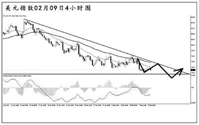 如圖所示,美元指數(shù)再度強力創(chuàng)出新低,日線圖MACD仍未擺脫空頭動能充盈的階段。4小時圖下降趨勢線和均線系統(tǒng)的壓制作用完好,美元指數(shù)下方的下跌空間仍然廣闊。短線持續(xù)發(fā)生了空頭動能減弱的信號,但在突破趨勢線之前,預(yù)計效果一般。后市美元指數(shù)向趨勢線一帶發(fā)起回調(diào)之后繼續(xù)下跌的概率較大。