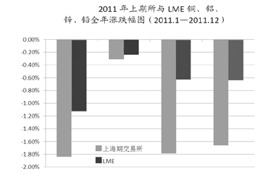 回顧2011年基本金屬價格,走勢可謂是意料之外、情理之中。年初對于中國消費的良好預(yù)期,使得與房地產(chǎn)、汽車、電網(wǎng)建設(shè)相關(guān)的基本金屬在年初價格統(tǒng)一被強(qiáng)勢拉漲。但是由于過度提前消耗消費預(yù)期,在二季度真實消費注入、中國基本金屬消費集體復(fù)蘇到來后價格反而大幅下挫。
