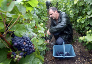 圖為在法國香檳地區(qū)的一個葡萄園里,農(nóng)民在采摘。新華社/法新 |