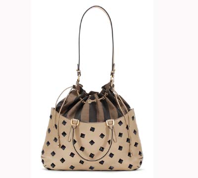 Silvia Fendi 將郊游藤籃的概念重新演繹,推出既實用而且?guī)Ф杉亠L味的包包:B. Fab。不同材質的對比,延續(xù)了Fendi的層次個性,可愛的波點和皮革彩色的鉚釘作為包包的裝飾,肩帶可拆除成掛肩和手挽款二種功能。