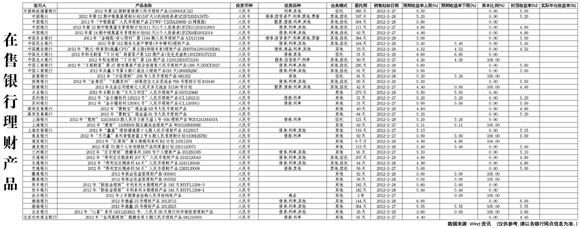 在售銀行理財(cái)產(chǎn)品[2012-03-01]