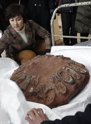 一件約有6500萬(wàn)年歷史的“恐龍蛋窩”化石1984年在中國(guó)出土之后,幾經(jīng)輾轉(zhuǎn)流失到境外,2003年被一名美國(guó)收藏家重金買下,并于2006年在洛杉磯組織的一次公開(kāi)拍賣中以42萬(wàn)美元價(jià)格成交,后經(jīng)多方交涉無(wú)償歸還中國(guó)。此件“恐龍蛋窩”化石包含22枚盜蛋龍恐龍蛋,其中19枚恐龍蛋中可見(jiàn)初具雛形的恐龍胚胎。這也是中國(guó)政府首次通過(guò)外交途徑追索流失國(guó)外的古生物化石。