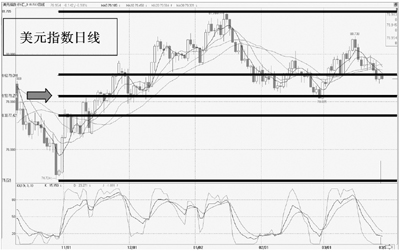 美元指數(shù)從2011年10月低點74.72一線反彈至高點87.78,技術上來看78一線是黃金分割的0.5回調位,支撐應較為強大,很有可能在此位置構成三重底。從技術指標來看,未來下跌動能不大。在未來一個月內我們預計美元指數(shù)將圍繞78-79做頭肩底的右肩,然后展開反彈,再次上沖882位置,而近期將在78-82區(qū)間箱體運行。