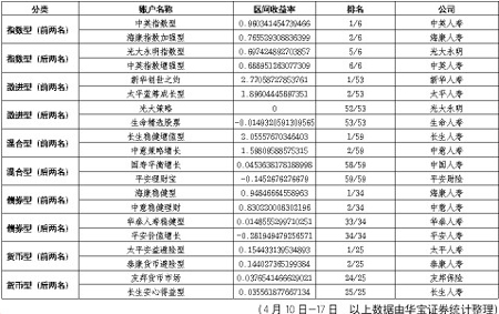根據(jù)華寶證券統(tǒng)計數(shù)據(jù),4月10日-4月17日,投連險各分類賬戶表現(xiàn)可圈可點,所有賬戶取得0.48%的平均收益,大多數(shù)賬戶均實現(xiàn)正收益,關(guān)注度較高的激進型賬戶取得0.70%的平均收益,略低于滬深300指數(shù)漲幅。
