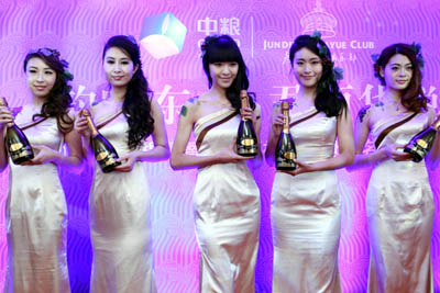 由中糧集團打造的高端紅酒俱樂部——中糧君頂華悅(北京)俱樂部日前在京揭幕。該俱樂部以品鑒、推廣中糧酒莊及世界名莊葡萄美酒為主,已先后在濟南、上海、寧波、重慶等城市開幕。圖為模特在中糧君頂華悅(北京)俱樂部內(nèi)展示葡萄酒。