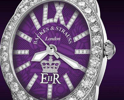 Office)批準(zhǔn),將英女王伊麗莎白二世的徽號(hào)加入此獨(dú)一無(wú)二及充滿歷史意義的腕表設(shè)計(jì)中;皇家紫色漆面表盤有精美的英倫玫瑰圖案裝飾,表盤下方有女王徽號(hào),12時(shí)位置為鑲鉆