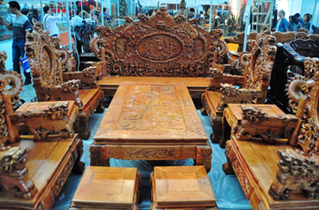廣西南寧舉辦的2011年中國-東盟博覽會林產(chǎn)品與木制品展上展出的一套紅木家具。記者 陸波岸/攝 |