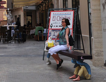 | 街頭的長椅,上面坐著的可不是雕塑喲 |