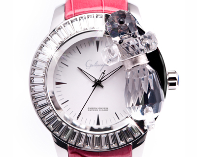是次系列以瑞士石英表芯打造,再加上藍(lán)寶石防反光表面及三十米的防水性能完美結(jié)合,配搭4款不同顏色「黑色、淺籃色、白色及粉紅色」的真皮表帶,表現(xiàn)出時尚優(yōu)雅的藝術(shù)格調(diào),仿如帶著小狗探索不同色彩的夢想國度;Galtiscopio