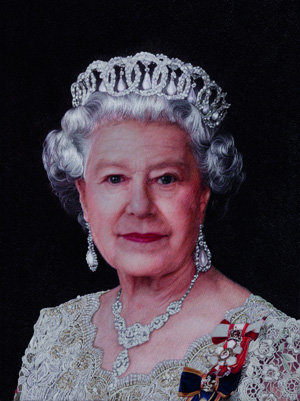 圖為姚建萍創(chuàng)作的蘇繡肖像作品《英國女王》。