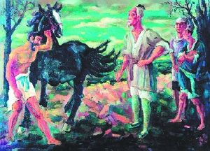 徐悲鴻國畫《九方皋》。