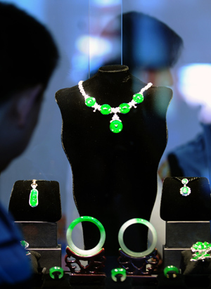 “2008年賣200萬元的一只頂級手鐲,到2010年就炒到5000萬元,你可以想象其中泡沫有多大!睓(quán)威翡翠專家摩太介紹,近年來,許多對翡翠一無所知的老板,攥著巨額資金蜂擁入市。2007年云南約有6000家翡翠珠寶店,2011年激增到21000家,如今估計有數(shù)百億元的翡翠積壓在商人手中。