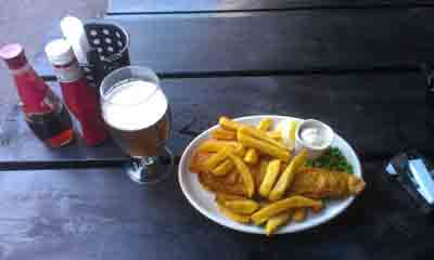 Fish and Chips(炸魚與薯?xiàng)l)源自英國(guó),是將去骨的魚裹上濕面團(tuán)油炸,然后與炸薯?xiàng)l一同食用,吃的時(shí)候還會(huì)配上不同口味的調(diào)味醬,是英國(guó)乃至全球非常普遍的街邊小食,被喻為英國(guó)“國(guó)食”之一。