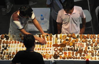 8月13日至14日,最新一期黃龍玉公盤交易在龍陵縣舉行。記者實(shí)地走訪發(fā)現(xiàn),隨著大量游資撤離,曾經(jīng)炙手可熱的黃龍玉正遭遇市場(chǎng)遇冷的考驗(yàn)!爸械投水a(chǎn)品價(jià)格降了三成左右,銷售量也少了四成,全部家當(dāng)就換來(lái)了這堆石頭,真是進(jìn)退兩難!饼埩昕h黃龍玉交易市場(chǎng)的玉石商人林新喜無(wú)奈地說(shuō)。