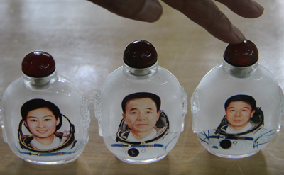 近日,中國工藝美術(shù)大師張汝財運用傳統(tǒng)的內(nèi)畫藝術(shù)繪制了以神舟九號任務(wù)飛行乘組三位航天員為主題的內(nèi)畫作品。據(jù)悉,該肖像水晶球內(nèi)畫,將贈送中國航天城永久展覽,3件內(nèi)畫鼻煙壺將分別贈送給神舟九號任務(wù)飛行乘組三位航天員景海鵬、劉旺、劉洋收藏。