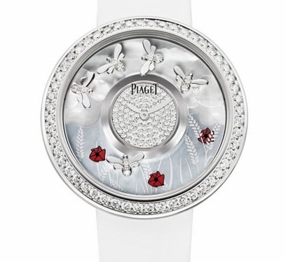 Perignon,竟然還能飄出細密的泡沫,味道平和,很好入口,一片緋紅很快從杯子移到臉龐上。這個時節(jié),你就該戴上鑲有共重2克拉的188顆美鉆的“夏”,讓我欣賞盤上小蜜蜂在飛旋。蔚藍跟乳白的珠貝背景,表現(xiàn)著朗日高懸。看吧,有一只小蜜蜂嘴饞了,飛到大紅花與麥穗?yún)仓。夏天有麥穗?幻想是沒有界限的。庭院對面的房間開了,也許出門的是這里的老住客毛姆呢。