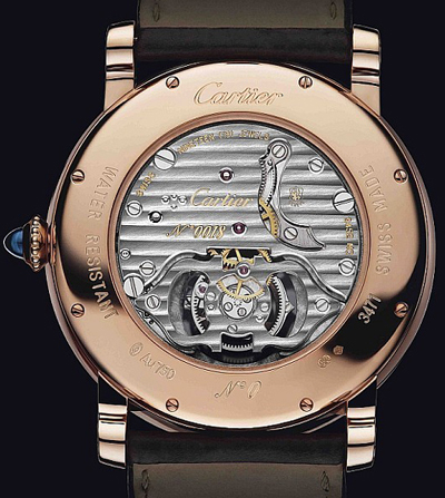 Flying Tourbillon浮動式陀飛輪三問腕表外,最受機械表玩家矚目的表款當屬Rotonde de Cartier Tourbillon volant