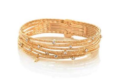 朝陽手鐲將華洛芙(Wellendorff)的經(jīng)典金絲編花工藝重新定義,在每條金繩上都增添一道額外的工序,壓制出一個個細微的凹痕,匯聚并折射出耀眼光線。17顆鉆石被巧妙隨意地鑲嵌在黃金手鏈。具有專利的18K金鉤扣,通過向內(nèi)折疊的設(shè)計,隱藏在手鏈之下,安全牢固的設(shè)計可讓佩戴者不用擔(dān)心日常佩戴時的拉伸和磨練,加上極具象征性的W鉆石標記,使這款朝陽手鐲成為不可多得的杰作。