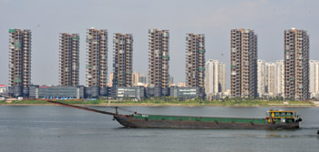 長沙7月住宅竣工面積比上月增長約24%。圖為長沙市湘江沿岸一處新建的商品房記者
