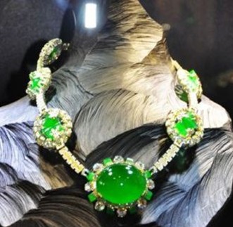 帶來數(shù)款價(jià)值超過億元的昂貴珠寶作品。其中采用頂級(jí)帝王翡翠主石(37.45*30.43毫米)制作的《長(zhǎng)城》價(jià)值5億6千萬港元;另一件《悟禪知翠》同樣采用頂級(jí)帝王翡翠,蟬抱碧潤(rùn)翡翠主石,背面巧鑲紫玉,估價(jià)3億港元。