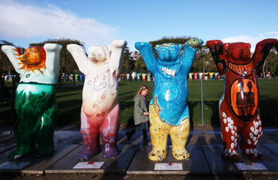 為紀(jì)念巴黎和柏林締結(jié)友好城市25周年,140座“聯(lián)合巴迪熊”12日亮相巴黎埃菲爾鐵塔下的戰(zhàn)神廣場(chǎng)。色彩繽紛的“巴迪熊”,高2米,手牽手排成兩行矗立于戰(zhàn)神廣場(chǎng)。每只“巴迪熊”都代表一個(gè)聯(lián)合國(guó)承認(rèn)的國(guó)家,并由每個(gè)國(guó)家的藝術(shù)家為自己的國(guó)家進(jìn)行設(shè)計(jì)制作。從2002年起,“聯(lián)合巴迪熊”已經(jīng)在全球25個(gè)城市舉行了巡展,其中包括中國(guó)香港,并在巡展所到的每一個(gè)城市舉行相關(guān)的募捐和拍賣(mài)活動(dòng)。目前已為聯(lián)合國(guó)兒童基金及當(dāng)?shù)貎和Wo(hù)組織籌得捐款190萬(wàn)歐元。