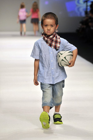 在“2013上海時裝周”的童裝發(fā)布會中,小模特憨態(tài)可掬的表演引發(fā)觀眾陣陣掌聲和歡呼,成為時裝周中的一個亮點。新華社發(fā)
