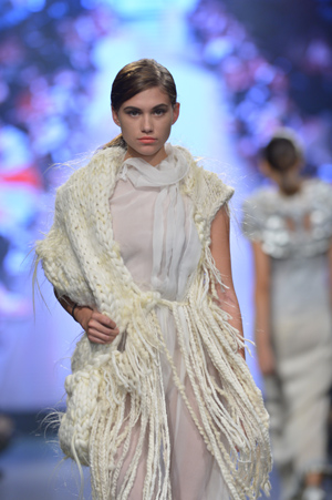 11月12日,在以色列特拉維夫舉行的2012特拉維夫時裝周上,模特展示W(wǎng)IZO海法藝術(shù)教育學(xué)院設(shè)計的時裝。