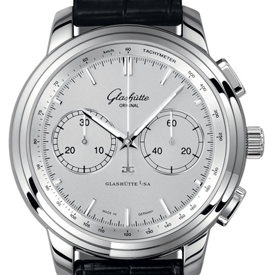 男士腕表采用了德國(guó)銀面盤,夜光矛形的白金中央時(shí)分針、中央計(jì)時(shí)秒針、格局平衡的30分計(jì)時(shí)盤和小秒盤、以及表徑44mm的大型不銹鋼表殼,環(huán)繞著面盤的黑色測(cè)速針包圍著洗黑的分鐘刻度,并搭配德國(guó)銀的時(shí)標(biāo),而不銹鋼表殼、表冠和按把分別采用了拋光和霧面相對(duì)比的打磨。Senator